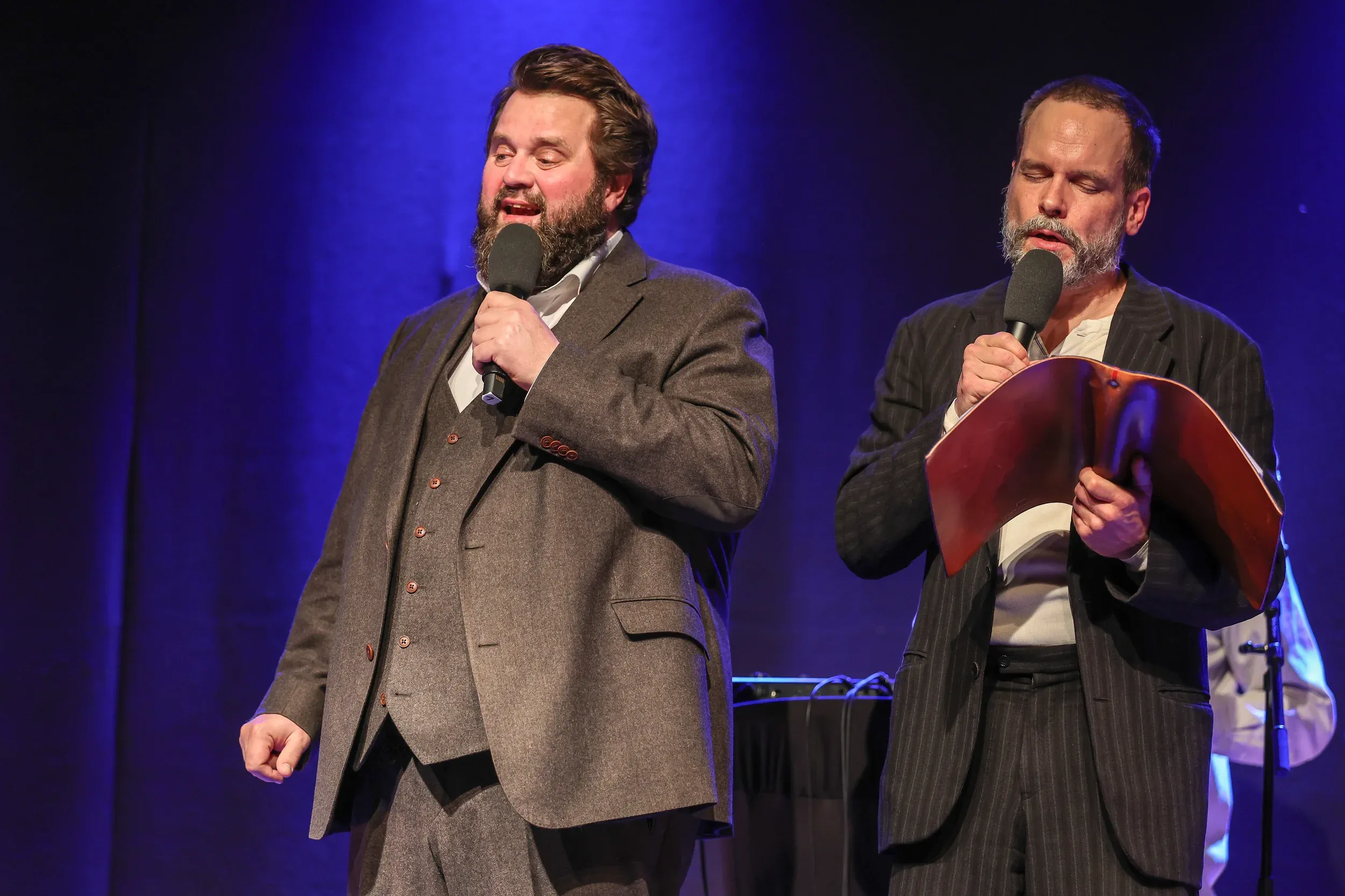 „Zwei Schauspieler. Alle Stimmen. Jeder verdächtig."