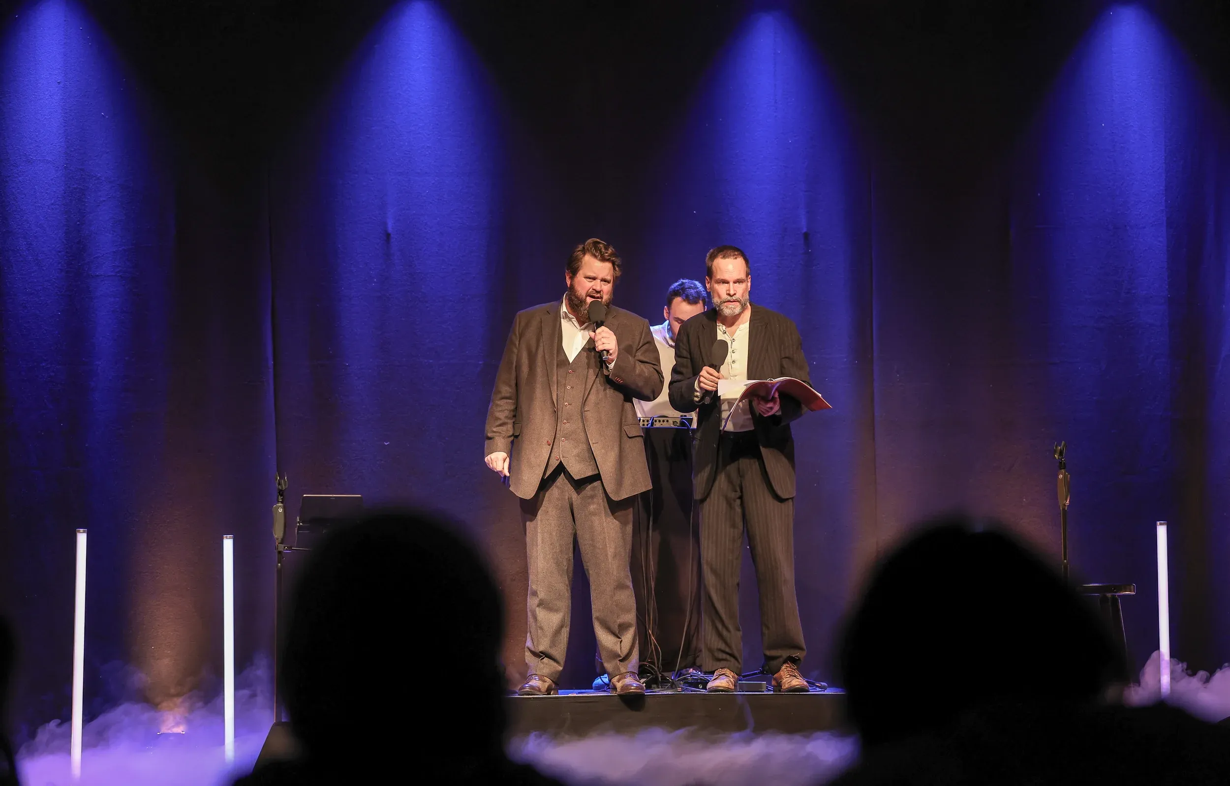 „Zwei Schauspieler. Alle Stimmen. Jeder verdächtig."